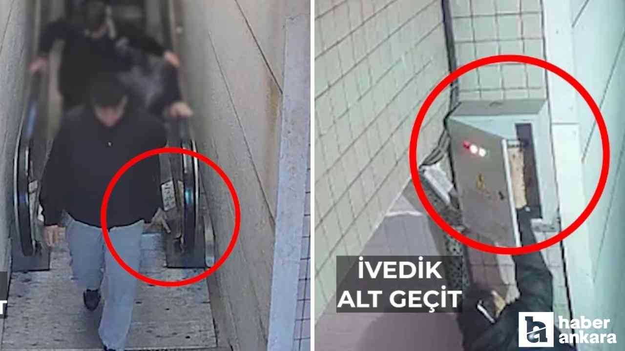 Son olarak İvedik Alt Geçidi’ndeki yürüyen merdivenin elektrik panosuna bir grup gencin müdahale ederek enerjisini kestikleri, güvenlik kameraları tarafından tespit edildi.