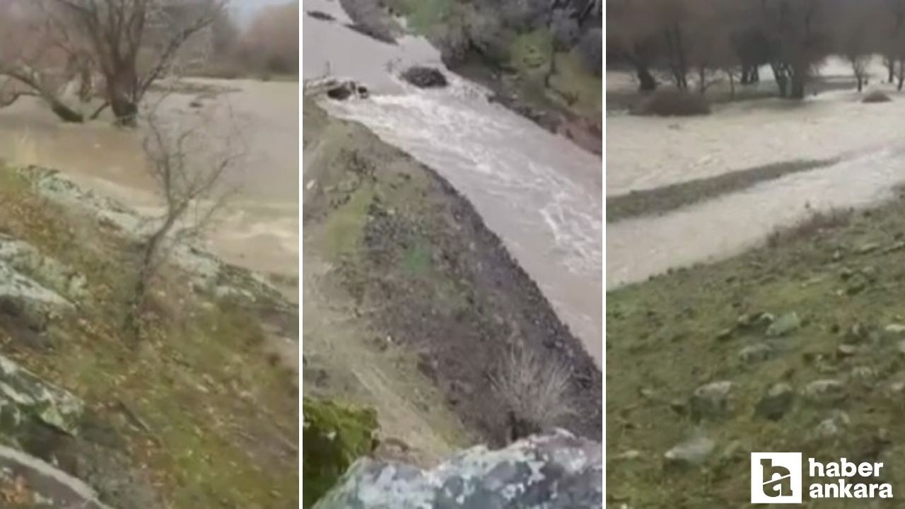 Ankara'nın Beypazarı ilçesinde etkili olan sağanak ve eriyen karlar nedeniyle dereler taştı.