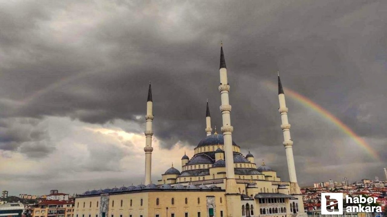 Kocatepe Camii'nin üzerinde yağmur sonrasında oluşan gökkuşağı başkentlileri kendine hayran bıraktı. Yağıştan sonra kısa bir süre görülen doğa olayını başkentliler hayranlıkla izledi.