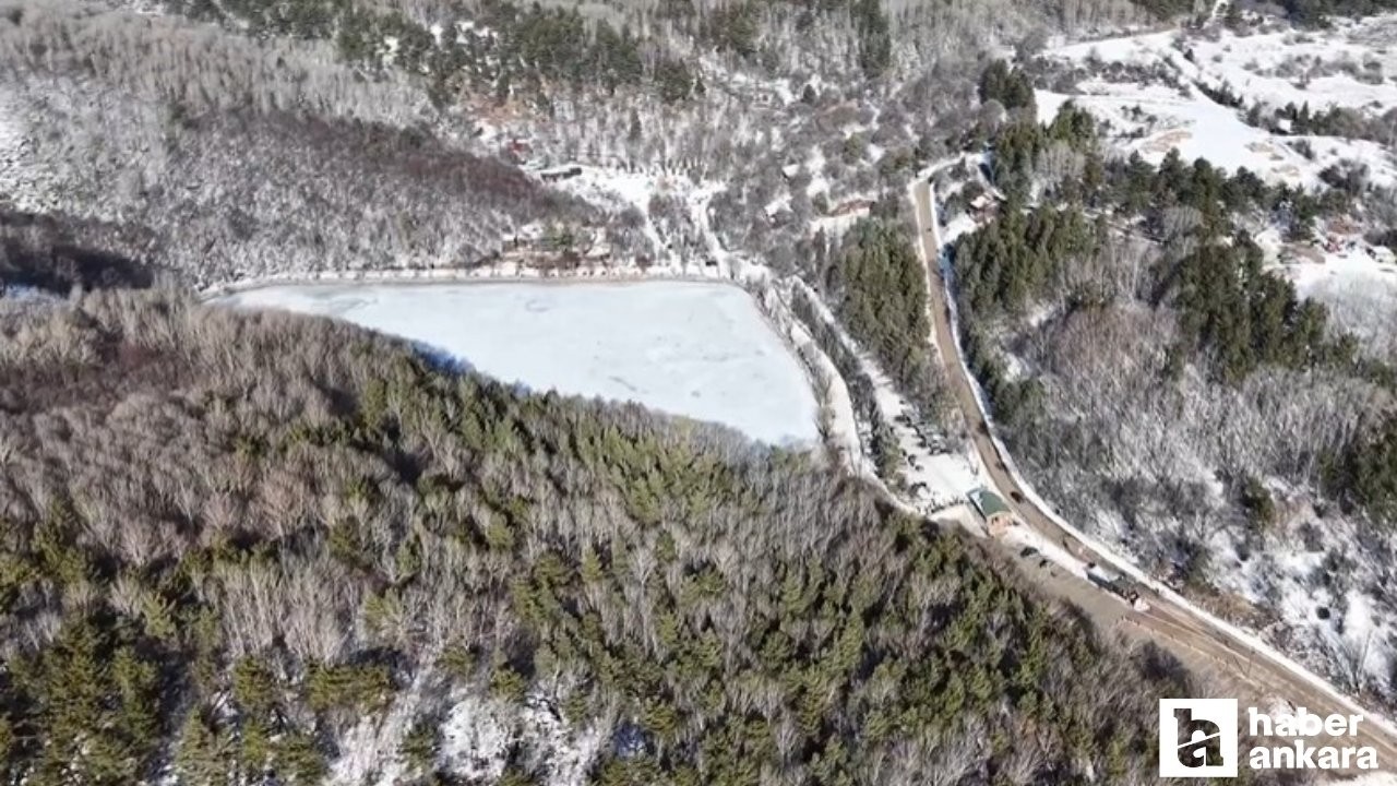 Ankara'nın Çubuk ilçesindeki Karagöl Tabiat Parkı içerisinde yer alan göl dondu.