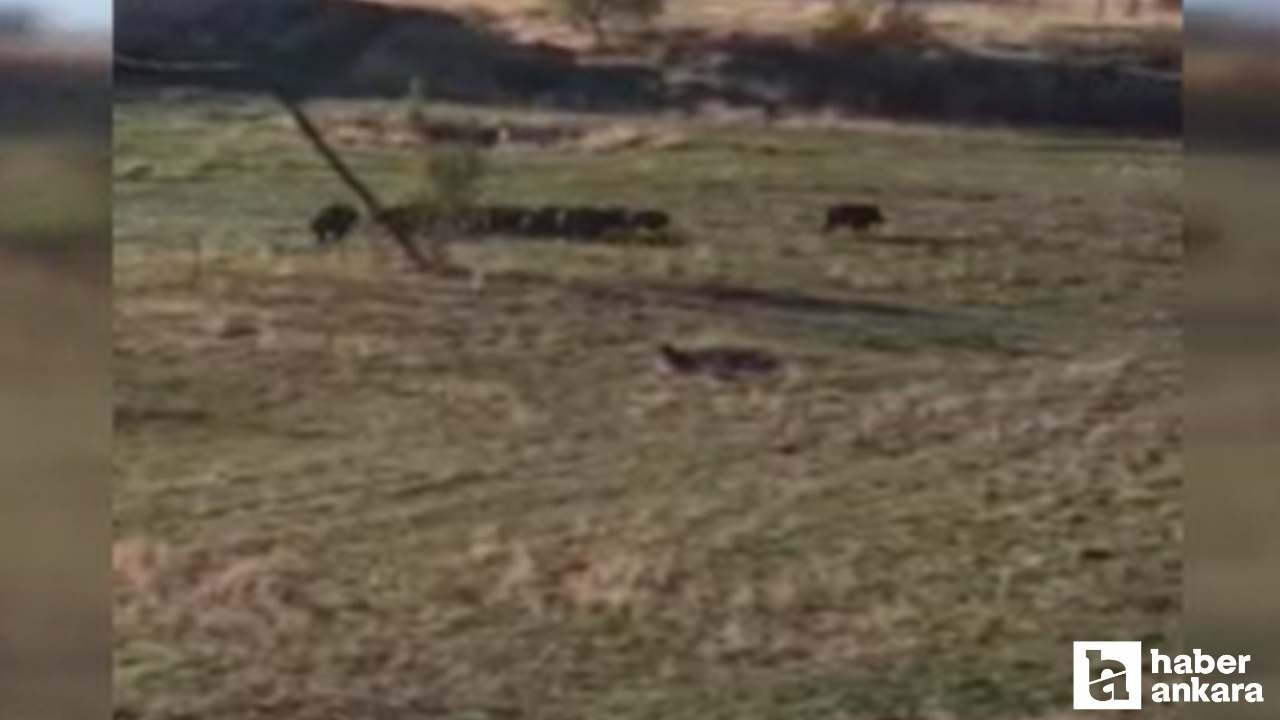 Elmadağ'da bir vatandaş araziden geçen domuz sürüsünü görüntüledi. Yaklaşık 25 domuzdan oluşan sürünün görüntüleri sosyal medyada da yoğun ilgi gördü.