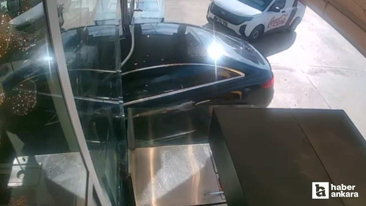 Kaza anı, iş yerinin güvenlik kamerasınca kaydedildi. Görüntülerde, hızla gelen otomobilin pastaneye girmesi, reyonlara çarparak durması ve dükkandan çıkması yer aldı.