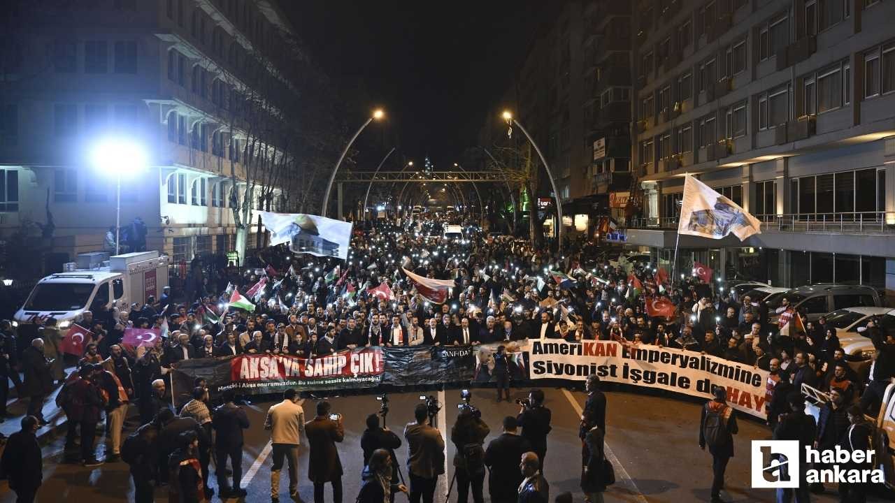 Binlerce Ankaralının katılmış olduğu protesto gösterisinde sık sık İsrail karşıtı sloganlar atıldı. Eylemciler Filistin ve Mescid-i Aksa için toplu dua ederek düzenlenen eylemi olaysız bir şekilde sona erdirdi.