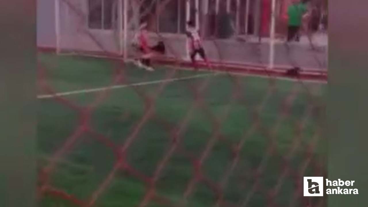 Ankara'nın Sincan ilçesinde halı sahada futbol oynayan çocukların topunu bir köpek kaçırdı. Köpeğin topu kaçırma anları gülümsetti.