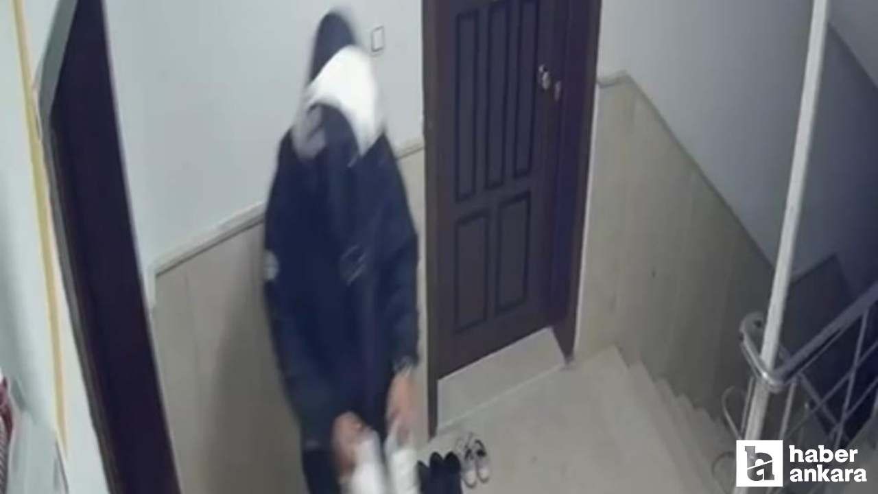 Ankara’da bir kuryenin sipariş için geldiği apartmandaki bir dairenin önündeki ayakkabı çaldığı anlar güvenlik kamerasına yansıdı.
