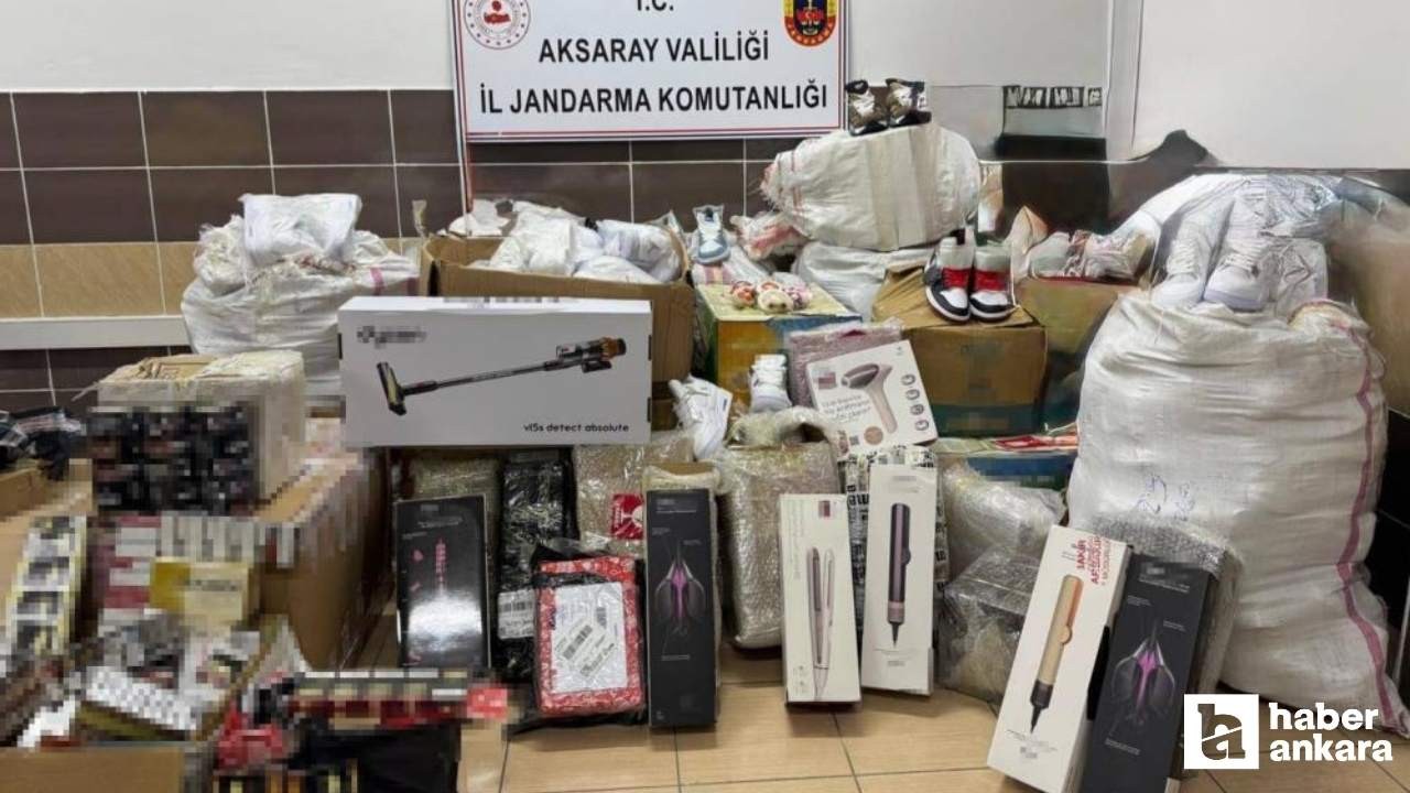 Aksaray'da jandarma ekiplerinin yapmış olduğu denetimde şüphe üzerine durdurulan araçta binlerce kaçak ürün yakalandı. Jandarmanın ele geçirmiş olduğu ürünlerin değeri 2 milyon 500 bin TL olarak açıklandı.