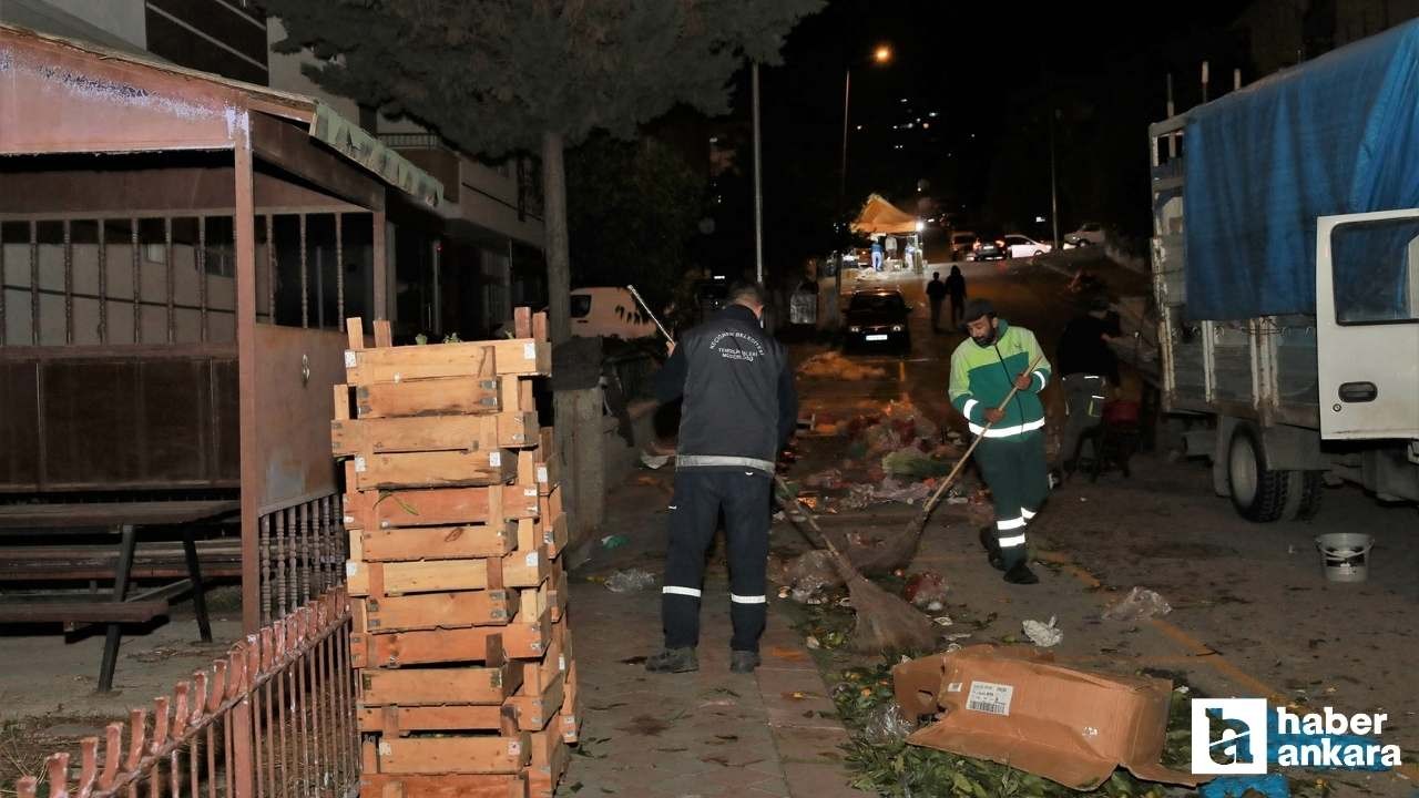 Keçiören genelinde sürdürülen program doğrultusunda belirlenen pazar yerlerinde detaylı temizlik çalışmaları yapılıyor. Kurulan pazarların ardından oluşan yoğun kirlilik giderilirken çevrenin daha temiz tutulması sağlanıyor.