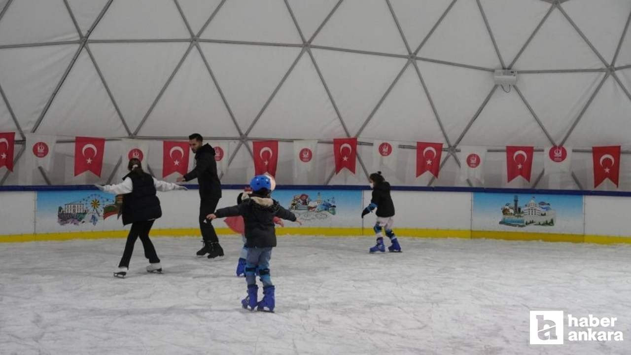 Keçiören Belediyesi’ne ait ücretsiz buz pateni pisti vatandaşlar tarafından yoğun ilgi görüyor.