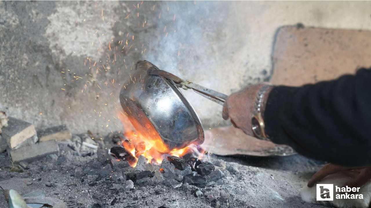 Kalaylama işleminin zahmetli olduğunu anlatan Uçar, bakır kapların önce yakılıp temizlendiğini, ardından kalaylandığını dile getirdi.