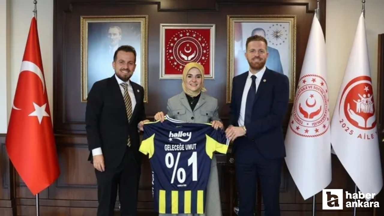 Üzerine "Geleceğe Umuz % 1" yazılan Fenerbahçe forması günün anısına Aile ve Sosyal Hizmetler Bakanı Mahinur Özdemir Göktaş'a takdim edildi. Görüşmenin verimli geçtiği belirtilerek karşılıklı fikir alışverişinde bulunulduğu belirtildi.